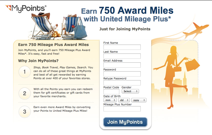 I recently got an email offer for 500 free United miles for signing up for MyPoints, but before I could sign up TPG reader foofiter tweeted me about a 750 point sign-up offer, which I happily jumped on. Sign-up link.