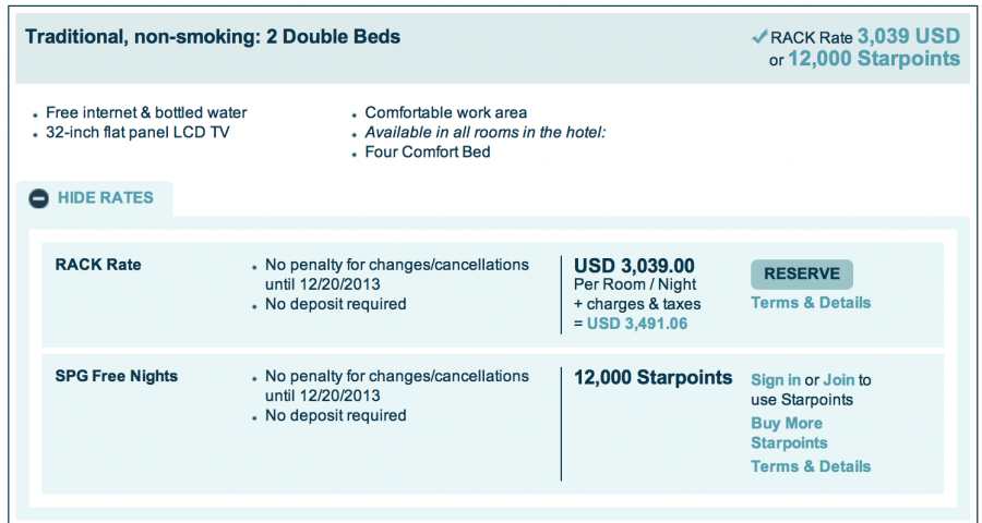 Adam found a way to stretch his Starpoints to save $8,456 by using all 30K of them giving him a value of 28.18 cents per point. Here were his findings: