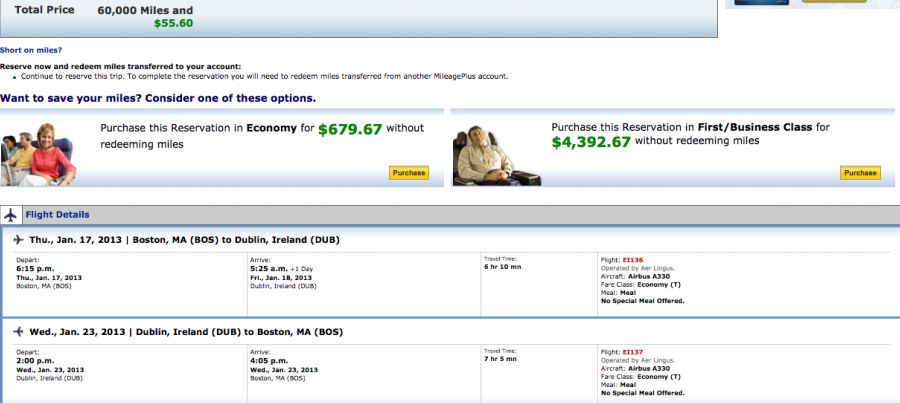 5) Transatlantic Flights on Aer Lingus. British Airways doesn't charge fuel surcharges on Aer Lingus flights and one great redemption is Boston to Dublin on Aer Lingus, which is only 25,000 Avios roundtrip in coach or 50,000 Avios for business class. Aer Lingus availability does show on Britishairways.com, but you have to call to book Aer Lingus awards. They can also be found on Expertflyer (coach availbaility), Qantas' site or United.com.