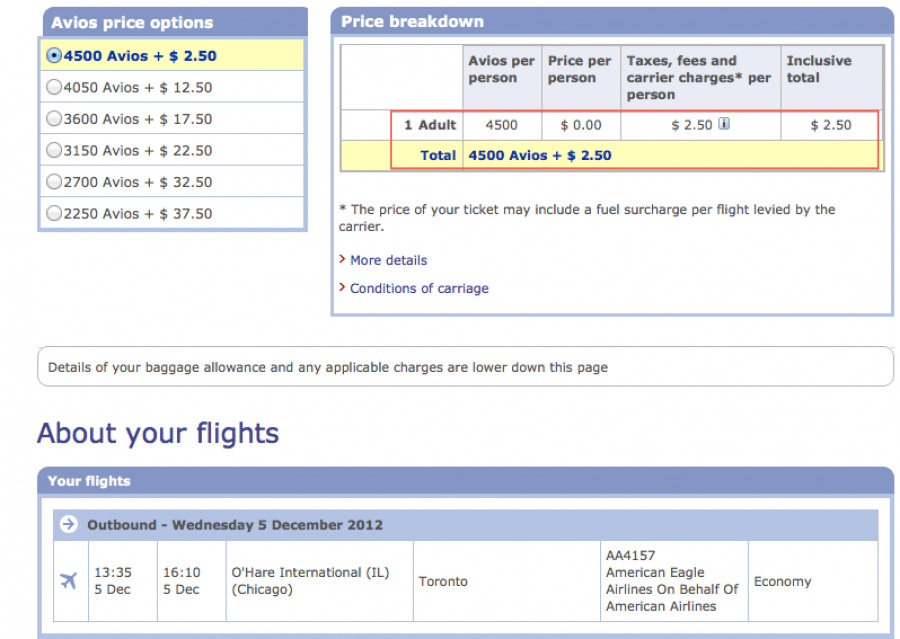 So those 4,500 Avios save $380.79, or nearly 8.5 cents apiece! Pretty incredible for a domestic coach redemption. The same exact flight would cost 12,500 AA miles and $77.50 (the $75 fee is waived for AAdvantage elites).