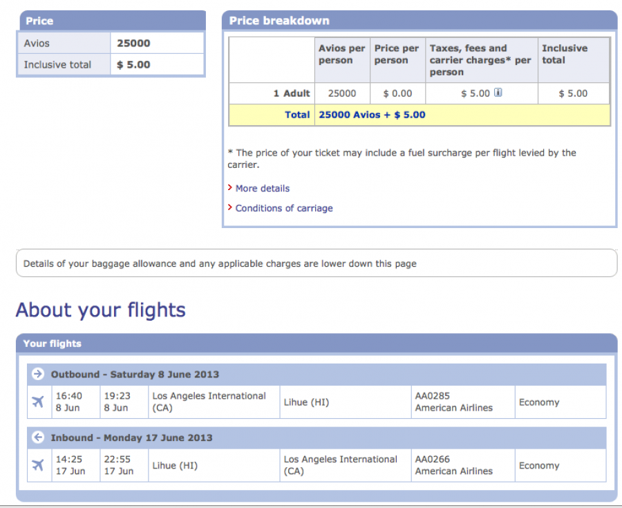I priced out a sample Los Angeles - Lihue (Kauai) flights for next June: just 25,000 Avios and $5 roundtrip with British Airways: