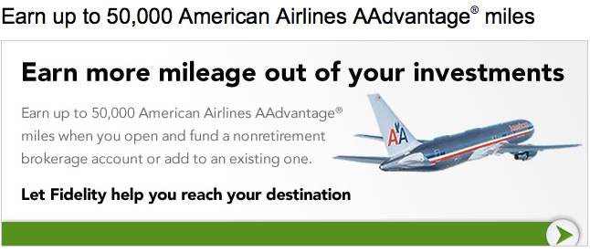 However, Fidelity is now offering up to 50,000 miles when you open and fund a non-retirement brokerage account or add money to an existing one by March 31, 2013 with American, Delta (expires February 14, 2014) and United (United expires October 1, 2014). (Thanks to Frugal Travel Guy/ VFTW for the reminder!)
