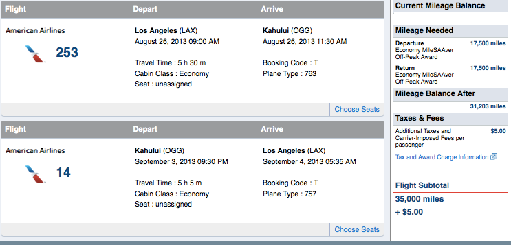 For example, I found this itinerary from LAX to Maui in September at the MileSAAver level on AA.com which would have cost me 35,000 AA miles.