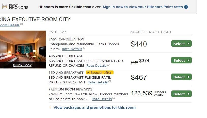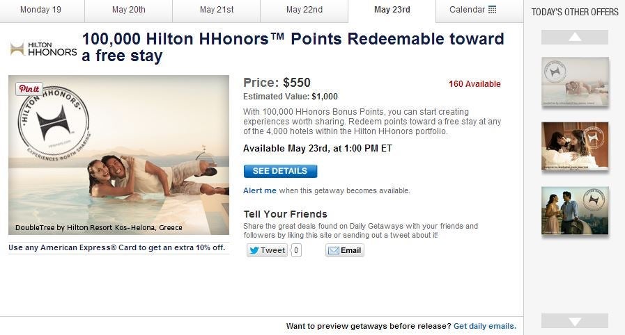 In this case, the marketing for this promotion comes as is: offers to buy points packages that can be redeemed at any hotel within the Hilton portfolio.