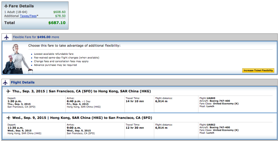 San Francisco (SFO) to Hong Kong (HKG) for $687 on United (earns 13,828 PQMs):