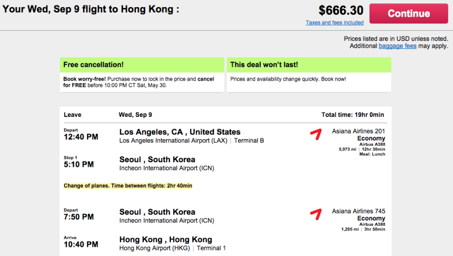 Los Angeles (LAX) to Hong Kong (HKG) for $666 on Asiana: