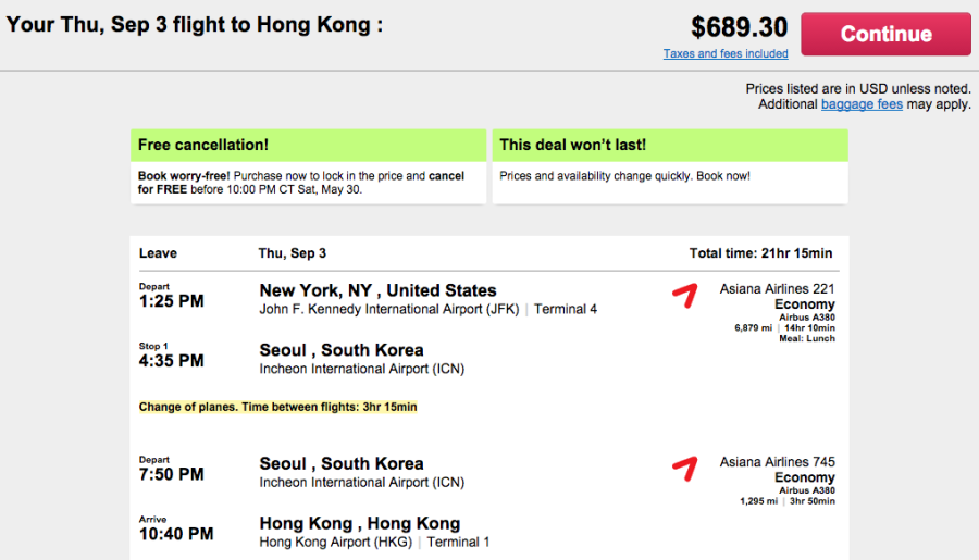 New York (JFK) to Hong Kong (HKG) for $689 on Asiana: