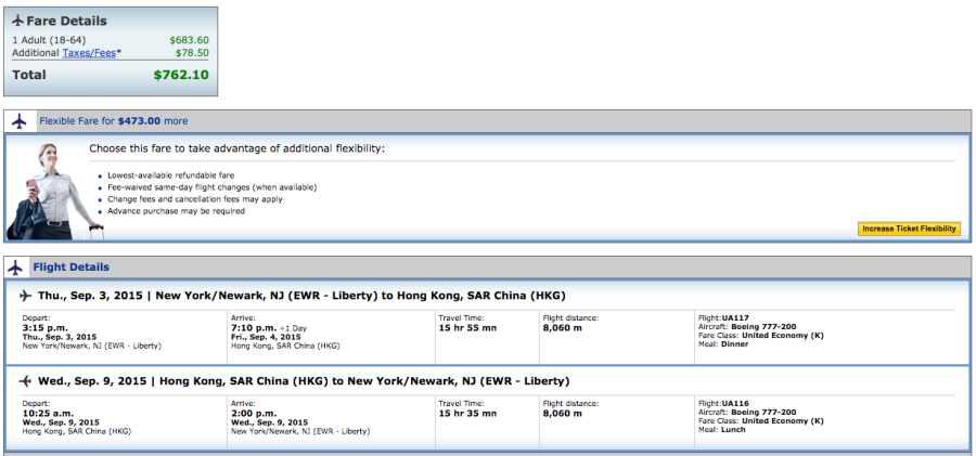 Newark (EWR) to Hong Kong (HKG) for $762 on United (earns 16,120 PQMs):