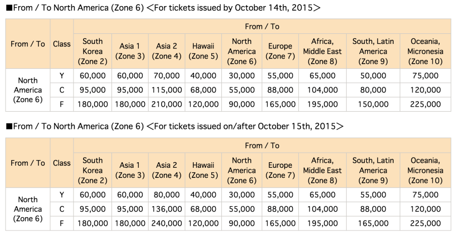 Looking at the North America chart above, ANA increased redemptions between North America and Asia 2, and made modest increases to the rates for North America to South and Latin America. Asia 2 covers much of Southeast Asia, including the following countries: