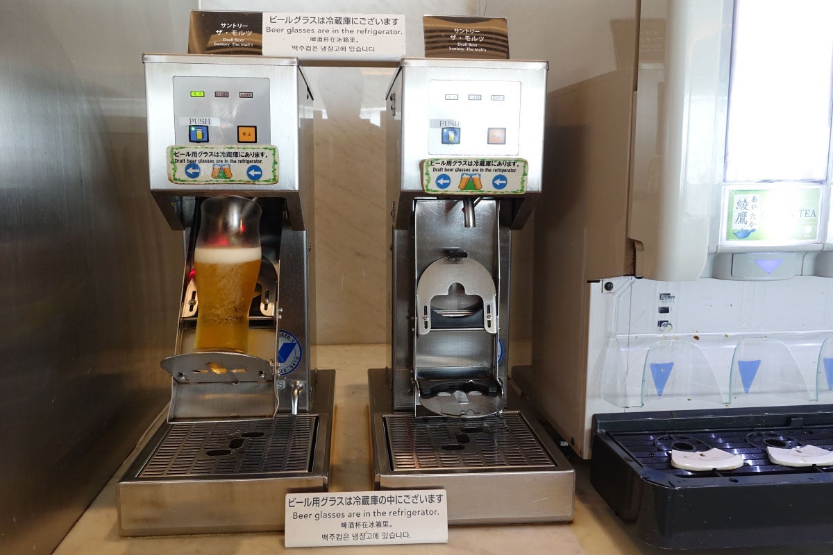 And, as you'll find in any Narita lounge, there were a couple of beer dispensers. JAL keeps beer glasses in the fridge, so they're nice and cold.