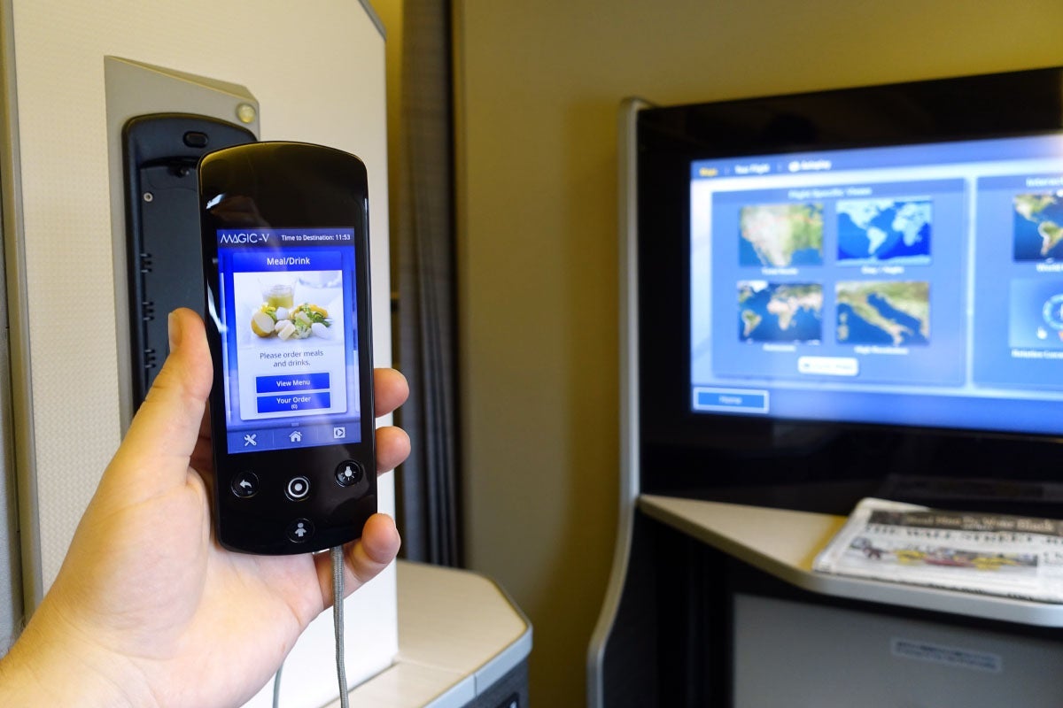 You can select programming either by touching the screen (if you can reach it) or by tapping the touchscreen remote, which is very similar to the controllers found on Etihad's A380 and United's 787-9.