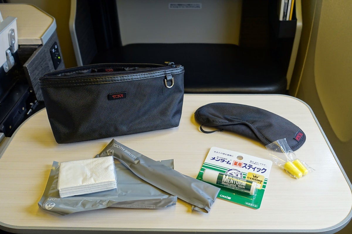 While the Tumi pouch was quite nice, the contents were underwhelming, aside from the Tumi-branded eye mask. JAL keeps toothbrushes in the lavatory, as well.