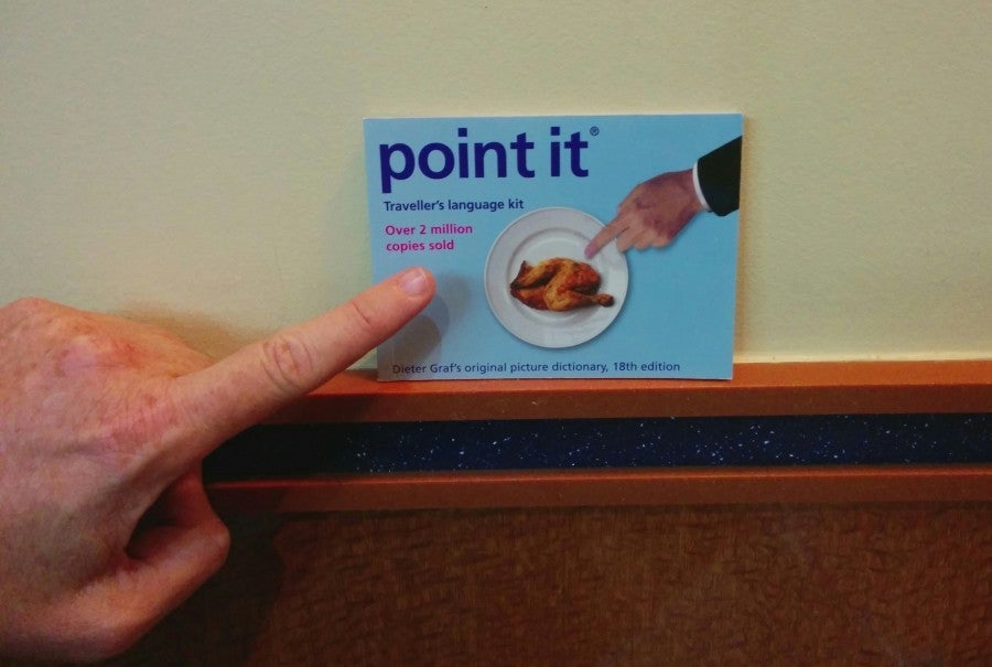 Put this tiny book in your pocket and get ready to communicate with people, no matter the difference in language. Each of the 72 pages simply displays photos of objects that you can point to, organized into common categories. Whether you need to get to a hospital, borrow some scissors or make sure there's no fish in your soup, this book has your back. And trust me, it's a lot easier to point to a picture of a crab than it is to act it out in a fancy foreign restaurant.