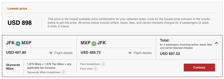 New York (JFK) to Milan (MXP) for $449 per person round-trip in economy on Emirates: