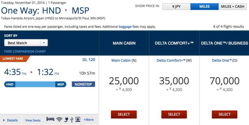 Keep in mind that unless you're based in the Minneapolis-St. Paul area, your journey will include a stop at MSP before heading on to Japan. This is a small price to pay for these great deals — especially considering Delta's award calendar shows fares as high as 87,500 SkyMiles plus taxes and fees one-way in economy.