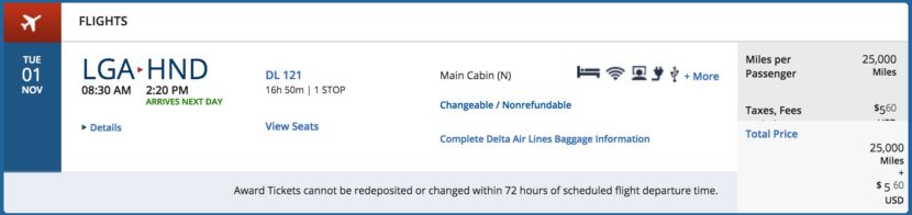 New York (LGA) to Tokyo (HND) for 25,000 miles + $5.60 one-way: