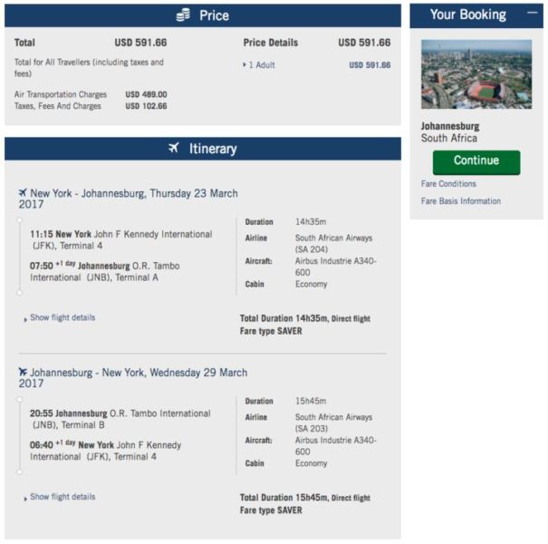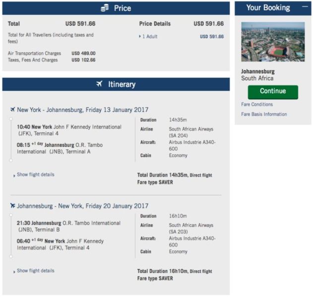 South Africa is a dream destination for many people, and South African Airways is making it much more affordable with some great deals from New York (JFK). We're seeing fares as low as $592 round-trip from JFK to Johannesburg (JNB). Even better, these flights are nonstop and operated by the carrier's A340-600, a special treat for Avgeeks. Fares are valid for departures from January through March 2017, but don't wait to book if you've been wanting to visit South Africa. Note that when you search on Google Flights for your dates, it may show a higher price, but you can book through either Expedia or South African's website and get these great prices.