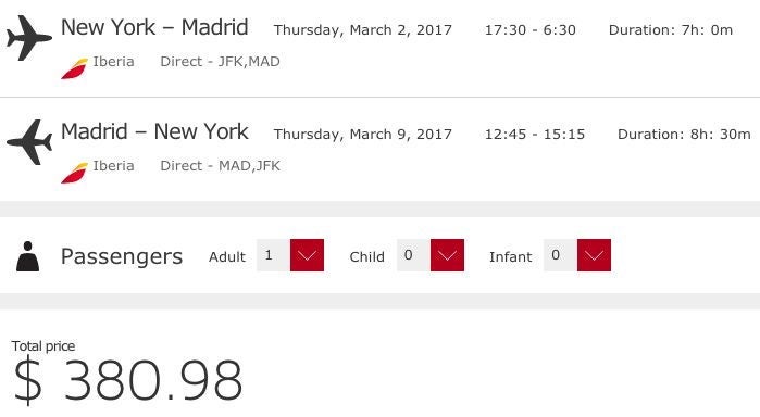 New York (JFK) to Madrid (MAD) for $381 round-trip in March: