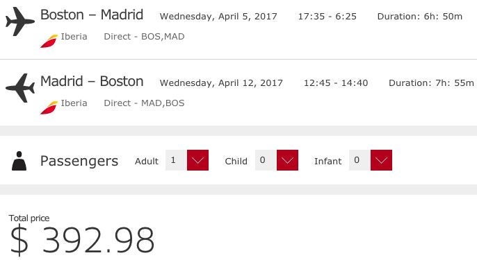 Boston (BOS) to Madrid (MAD) for $393 round-trip in April: