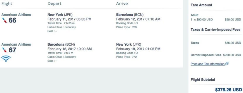 New York (JFK) to Barcelona (BCN) for $376 round-trip in February: