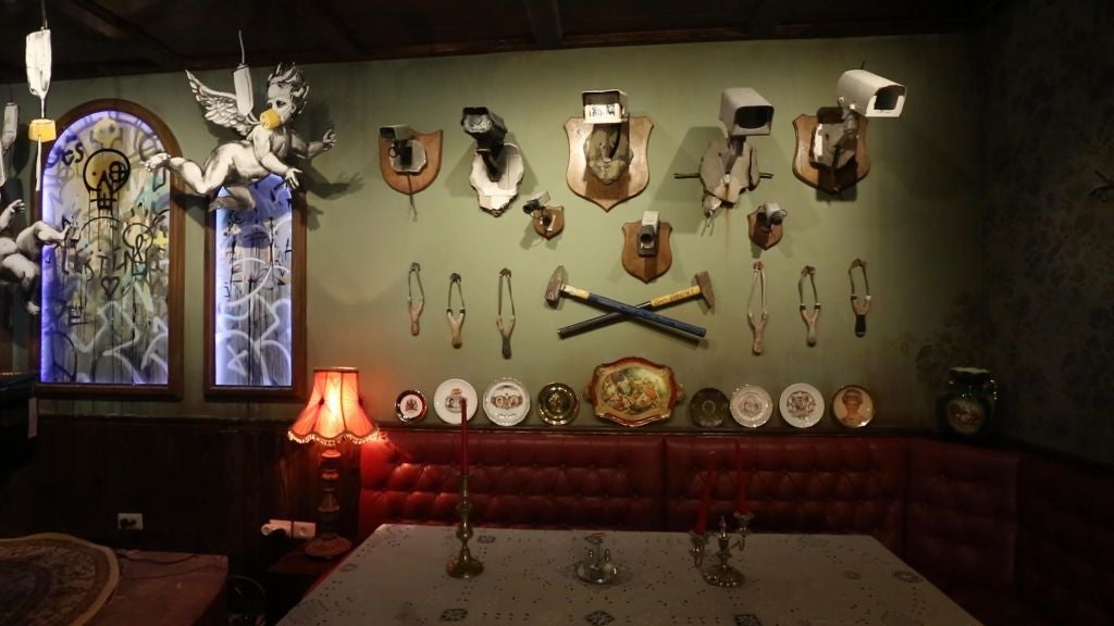 The hotel gym was replaced with a museum exploring the history of the separation barrier and Israeli-Palestinian conflict. Guests can relax at the 1917-themed hotel piano bar and admire the variety of Banksy pieces including everything from a cherub on life support to statues choking on tear gas fumes. Soon, an independent art gallery will open with rotating works from notable Palestinian and Israeli artists.