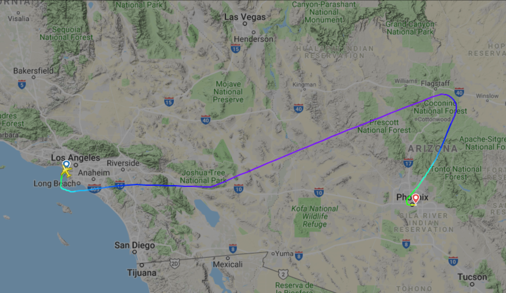 Flight AA10 took off from LAX at 9pm on Wednesday, heading for New York's John F. Kennedy Airport (JFK). According to flight tracking site FlightRadar24, the Airbus A321 diverted to Phoenix (PHX) about an hour and a half into the transcon flight.