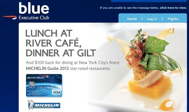 Up to $100 Credit for NYC Michelin Dines With British Airways Visa Card