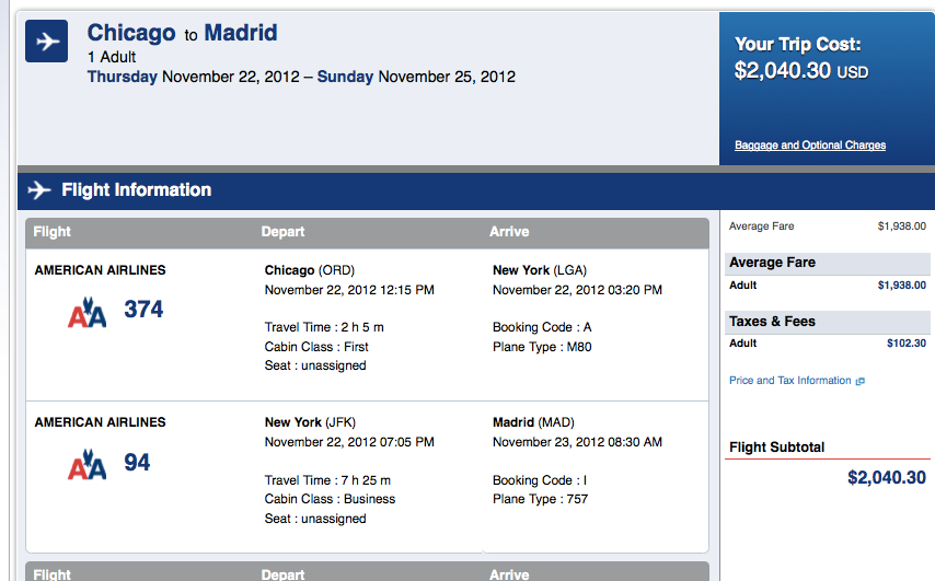 American from Chicago to Madrid for $2,040 roundtrip.