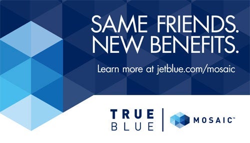 Mosaic members will get perks including three bonus TrueBlue points per dollar spent for a total of nine points per dollar when booking on jetblue.com (3 base, 3 for online booking and 3 bonus), a free second checked bag for everyone flying on the member's reservation, Even More Speed and early boarding access, the ability to redeem TrueBlue points for Even More Space seats, and six free Even More Space seat upgrades.