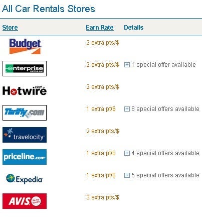 Another opportunity to earn bonus miles is through the airline/hotel shopping portals. Not all the shopping portals give bonuses for car rentals all the time, but it's a good idea to check their first and see if your favorite car rental company is offered. For reference, here is a list of shopping portals: