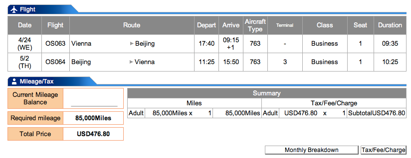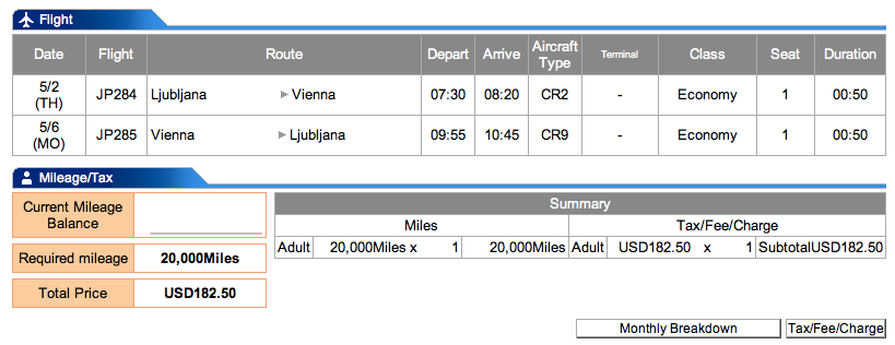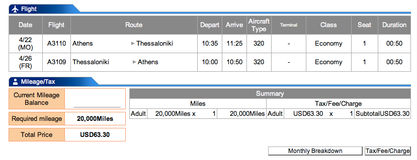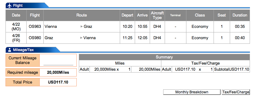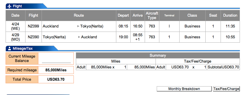To get a good cross-section from which to extrapolate, I looked at award availability for specific segments – both international and regional – so that I could find how much the taxes and fees would be for various routes on ANA’s partners in both economy and business classes.