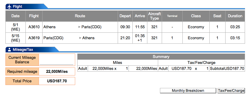 However, ANA does levy fuel surcharges on many of its partners. In order to calculate them, though, you actually have to have the miles necessary to book an award in your account, which makes transferring miles in from one of the partner programs a bit of a gamble. I have the miles in my ANA account already, though, so I wanted to do a series going through awards on each of ANA’s airline partners and looking at the taxes and fees associated with each.