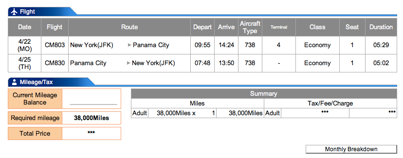 Copa Airlines New York (JFK)- Panama City Economy Award