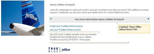 11 of the transfer partners are known to have instant transfer times. Virgin Atlantic Singapore, Iberia, Cathay Pacific Asia Miles, ANA, and Aeromexico can take a day or longer. This program regularly features bonuses for transfers, such as the current 25% JetBlue bonus offer available through September 15th.