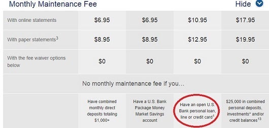 US Bank Gold Checking fee waiver