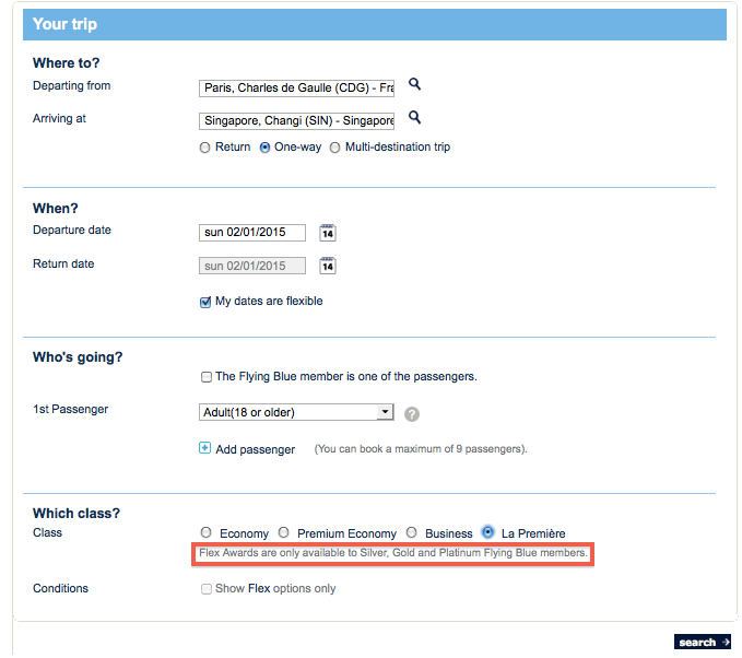 Now for the bad news. In order even to book these suites, you have to be an elite member of Flying Blue. This wasn't supposed to be the case per Flying Blue's program changes (and devaluation) last year, when they claimed to open up these awards to non-elites. However, when you actually try to book these awards as a general Flying Blue member, there's a message at the bottom of the screen that only Flying Blue Silver, Gold and Platinum members are eligible.