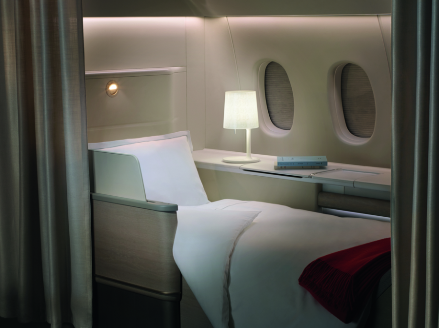 Each seat also has a 24-inch HD monitor for in-flight entertainment, and a menu by a pantheon of Michelin-starred chefs, including Joël Robuchon, Guy Martin and Michel Roth. One of the more interesting features is a curtain that completely encloses each suite for privacy.