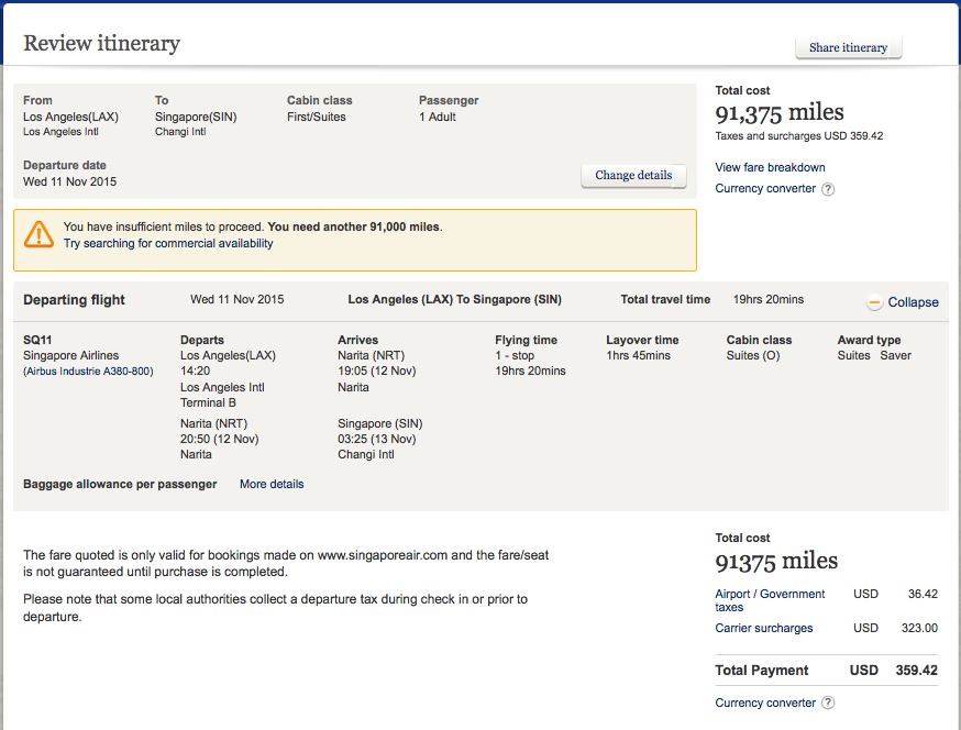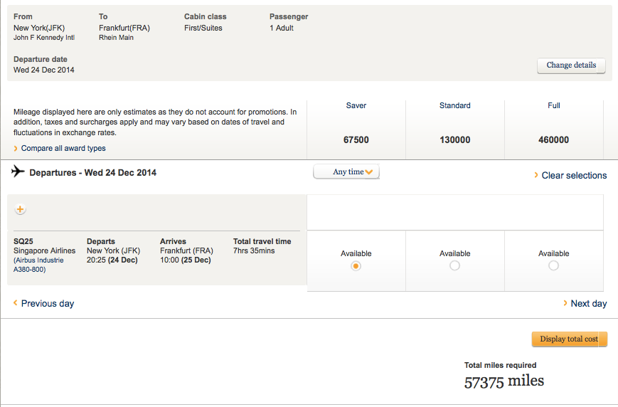 Singapore only releases First Class Suite awards to its own Krisflyer members, so you have to be using these miles to book them. The good news is that Krisflyer recently became a 1:1 transfer partner of Chase Ultimate Rewards and Citi ThankYou Rewards, in addition to already being a transfer partner of Amex Membership Rewards and Starwood Preferred Guest. So even if you've never flown Singapore Airlines or accrued even a single Krisflyer mile, there are a lot of ways to get miles into your account. Plus, if you book a Singapore Airline award online through Krisflyer, you get a 15% mileage discount.