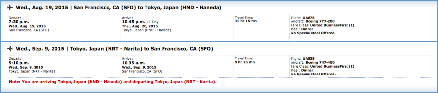 Here's an example of a flight from San Francisco to Tokyo in August/September: