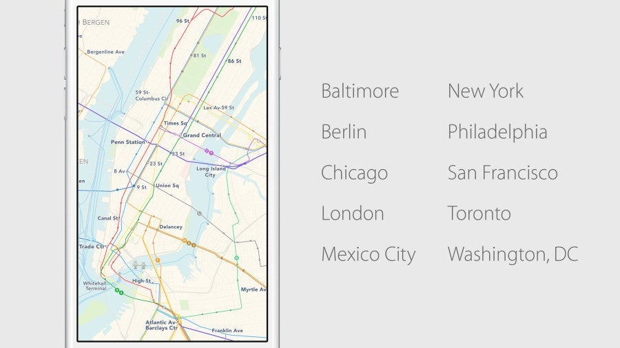Subway navigation is about to get much easier in hundreds of cities around the world. At the WWDC conference in San Francisco today, Apple introduced a Maps app refresh, which brings advanced Transit info to your iPhone. Transit view in Maps includes subway times and maps, bus information and ferry schedules. You can tap on a stop or station to view bus and subway lines that run through it, along with a detailed schedule for each. It'll launch with support for cities around the world, including Baltimore, Berlin, Chicago, London, Mexico City, New York, Philadelphia, San Francisco, Toronto, Washington D.C. and 300 cities in China.