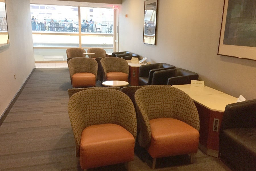 Also on the mezzanine level on the mirror opposite side of the two terminals, this lounge is filled with the same gray chairs that are omnipresent at all the other US Airways lounges I've visited this week. They were far too close together, and the lounge felt cramped, despite being in one open space.