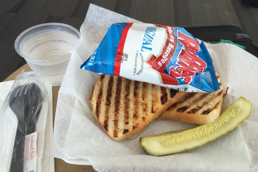 I ordered lunch while here, and while TPG commenter DCA Frequent Flyer suggested that I order the chicken and brie sandwich, unfortunately it wasn't on offer today. Instead, the club special was a shrimp roll, but I'd gotten my fill of seafood-filled rolls yesterday in Boston. Instead, I ordered a $12 panini from the standard Admirals Club menu, hoping that it was better than the one I had in Chicago O'Hare.