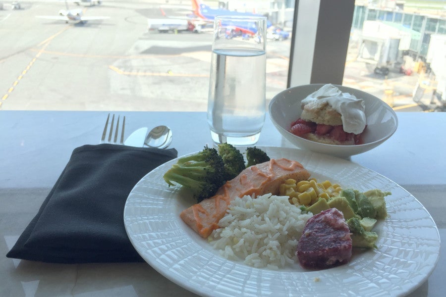 The best part though, was the glass of fruit-infused water, and — get this — cloth napkin and metal silverware! After a week of eating at Admirals Clubs, I felt like royalty eating with actual metal silverware.