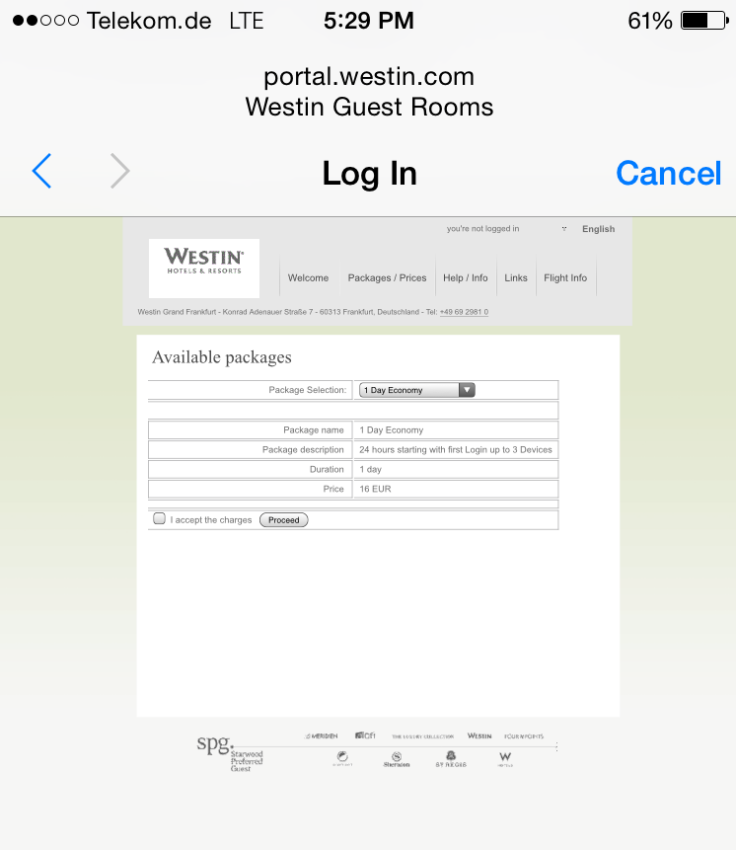 The one shocker I got was when I logged in to use the internet. It sort of astonishes me that a major chain hotel like this in a major business city charges for Wi-Fi at all when other major companies like Hyatt have waived these fees completely. However, the Westin charges guests 6 euros (about $7) for a single hour of Wi-Fi or a whopping 16 euros (about $18) for 24 hours. I would have had this fee waived if I’d booked directly through Starwood since I would have been able to enjoy free access as a SPG member, regardless of status, but I reasoned away this annoyance by telling myself I’d saved $160 on the room rate itself, so paying 16 euros for the internet was small in comparison. It still stung, though.