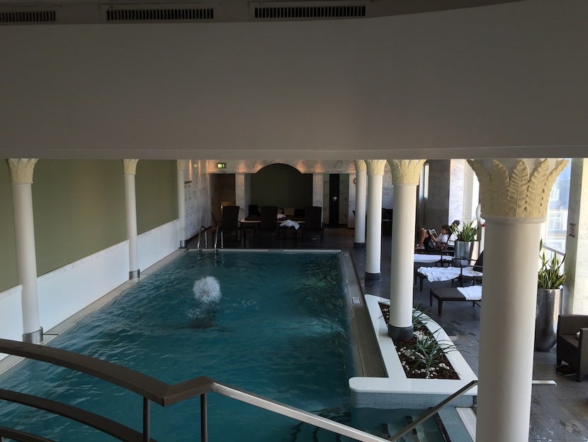 Going through the locker rooms, you also come to the indoor pool, with a small bar for cocktails and snacks at the entrance and lounge chairs on two levels. It’s not a huge pool, but long enough to do some laps.
