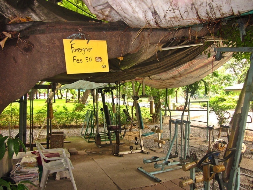 If you're up for a unique fitness experience, you can pay 50 THB (just over $1) to work out in the vintage outdoor gym.