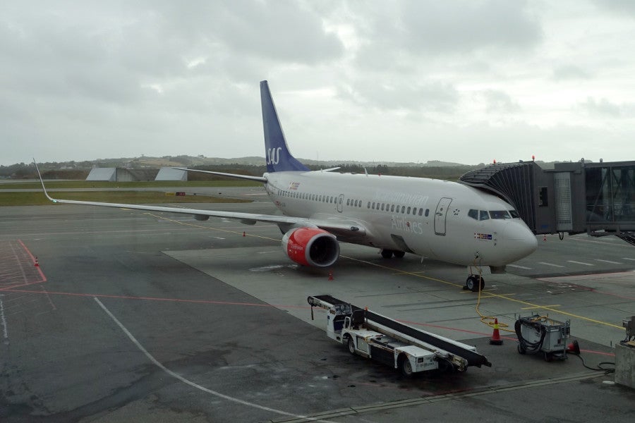 2. The plane isn't owned and operated by Scandinavian — Even though it has the SAS name and logo on the side, this 737 is under a wet lease from Privatair, which means even the flight attendants work for the lessor. The crew is based in Geneva, which certainly isn't an SAS hub, so the commute to Stavanger requires two flights in each direction. Once the plane moves to Copenhagen on Sunday, the crew will be able to commute home on a single flight.