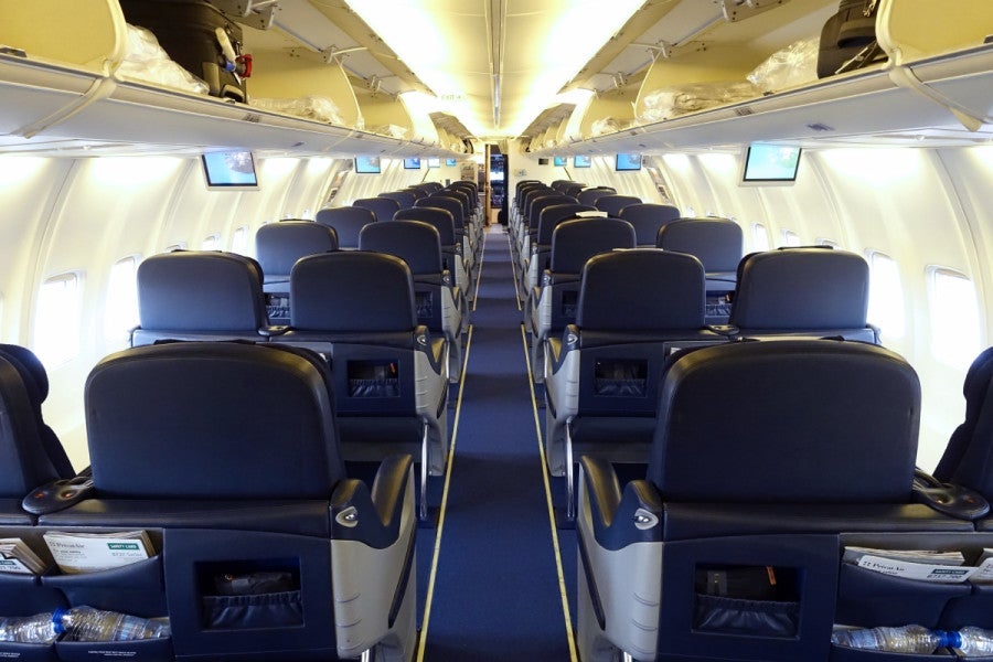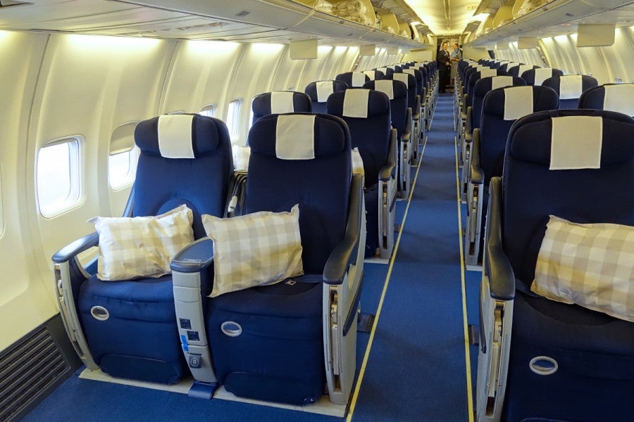 3. The entire cabin is business class — There are 44 business-class seats, but more than half were empty on this flight. Now, an all-business cabin isn't unheard of, but it's unusual. British Airways flies an all-biz Airbus A318 between New York and London's City Airport, with slightly better seats, and La Compagnie operates a couple all-business flights from Newark (with not so great seats) — but a single-class cabin is definitely rare.