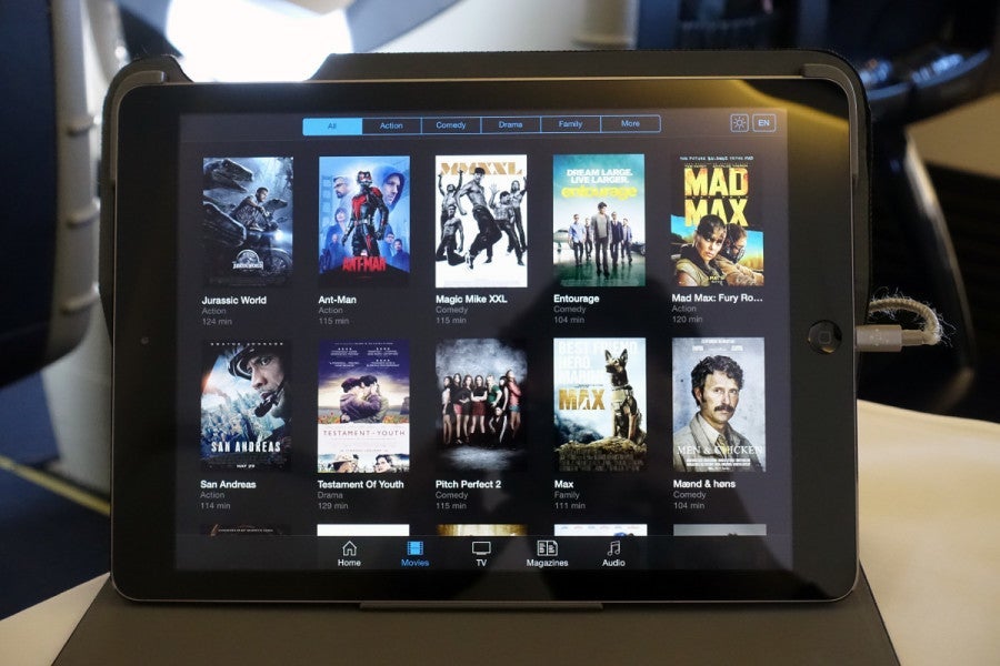 7. There's no Wi-Fi or built-in IFE — But you do get to use an iPad with a dozen or so movies and TV shows for the flight, plus a pair of Sony noise-canceling headphones. Wi-Fi would be much appreciated on this aircraft, especially with the 10-hour flying time traveling westbound to Houston. And, with just 44 passengers, there's a good chance the connection would be decent (if internet were provided). There are power outlets, fortunately, but no USB ports for charging cellphones.