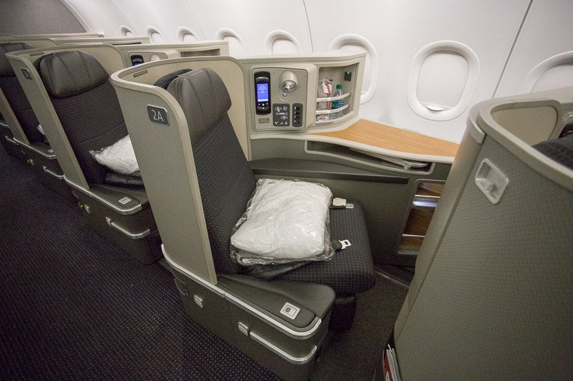 The seat really is above and beyond most domestic products — in fact, the first-class seat here is actually pretty much identical to the well-touted business class seat on American's internationally configured Boeing 777-300ER (77W). For additional privacy, each first-class seat is angled away from the aisle and toward the windows.
